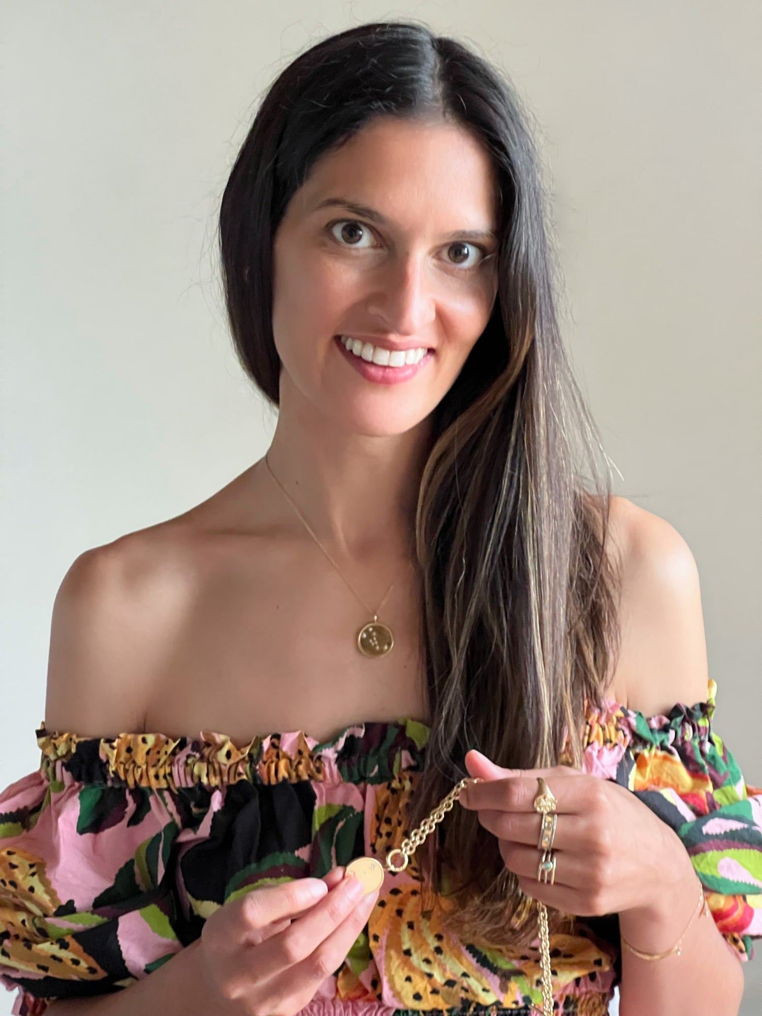 that did not exist in the market. It was a double sided, astrology focused, personalized pendant that celebrated the birth of my son. I loved it so much and never took it off. I became obsessed with designing and began to layer more